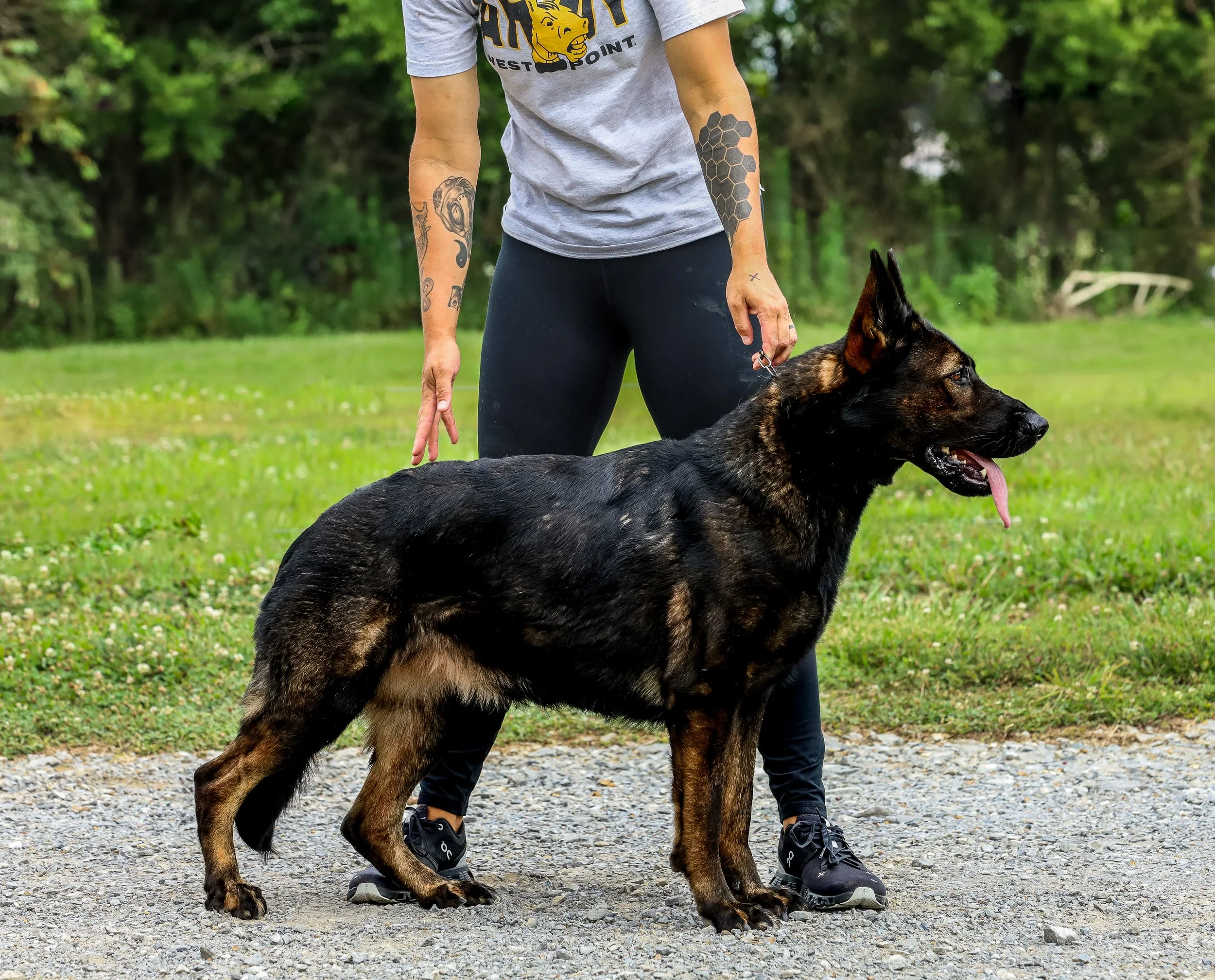 Stoli is a striking dark sable female, thick boned with balanced structure and a commanding presence. At 80 pounds and 25 inches, she carries herself with confidence and athleticism. She is a medium-drive dog with an excellent off-switch, making her just as comfortable relaxing at home as she is working. Naturally dominant yet stable, Stoli is dependable with children and brings a thoughtful, controlled energy to every interaction. She has balanced food and toy drive, making her versatile for training while still maintaining a calm, easygoing demeanor in daily life.